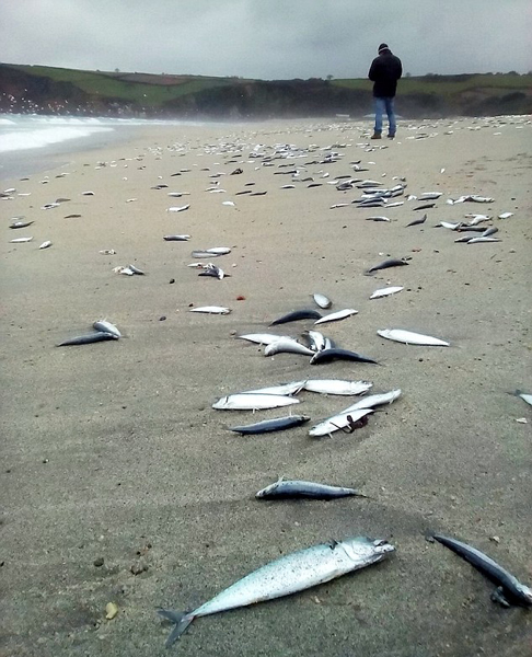 【環球網綜合報道】據英國《每日郵報》12月5日報道,12月4日,英國男子愛德華·波爾(Edward Bol)在康奈爾郡噴特宛(Pentewan)海灘上遛狗時發現數以千計的鯖魚和鯡魚尸體。專家稱這種現象實屬罕見,或因惡劣天氣導致魚群死亡后被沖刷上岸。