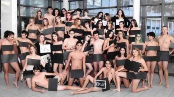 法國(guó)一高中日前拍出一張“全裸畢業(yè)照”