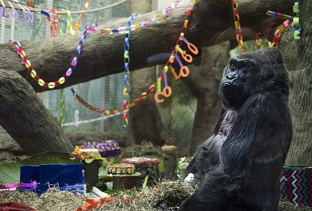 中新網12月25日電 據外媒報道,正當大家歡度圣誕佳節,美國哥倫布動物園暨水族館的大猩猩科洛(Colo)則喜迎她的60歲大壽?坡迨鞘澜缟系谝恢怀錾趧游飯@、美國最老的大猩猩,它已比大猩猩預期壽命長20年,至今兒孫滿堂。