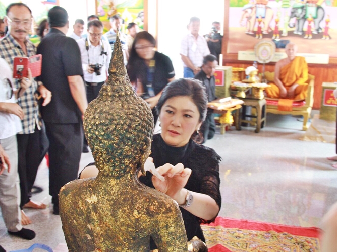 泰國前總理英拉為名寺佛像貼金 民眾熱情贈送新年禮