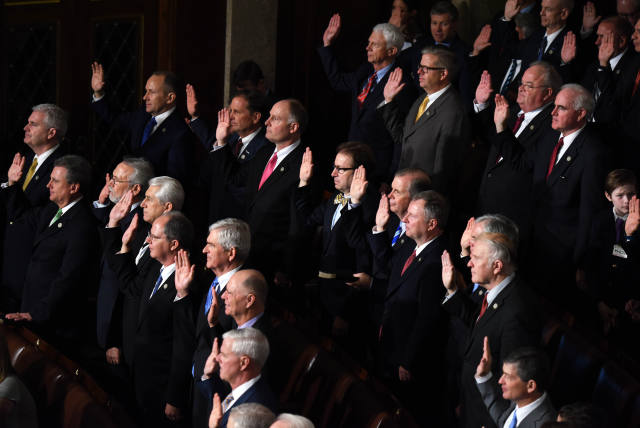 1月3日,在美國華盛頓國會山,議員們宣誓就職。(新華社記者 殷博古 攝)
