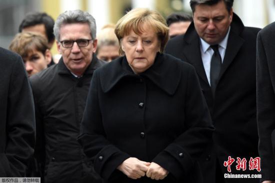 資料圖:當(dāng)?shù)貢r間2016年12月20日,德國柏林,德國總理默克爾前往發(fā)生恐襲的圣誕市場,獻(xiàn)花悼念遇難者。