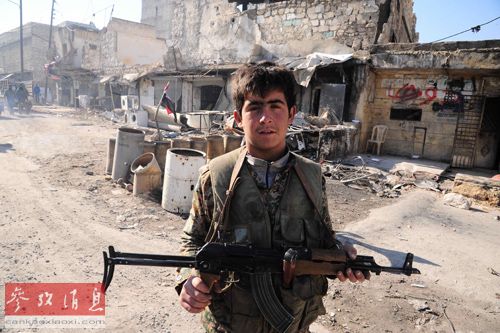 一名敘利亞士兵站在阿勒頗東部的廢棄居民區前(攝影 阿馬爾)