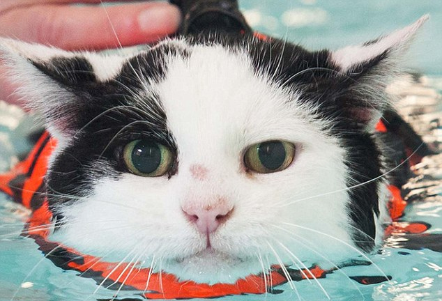 據英國《每日郵報》1月16日報道,一只名叫查理(Charlie)的11歲英國短毛貓由于過度肥胖,體重增至原來的兩倍,目前已通過游泳成功減掉4磅(約1.8公斤)。