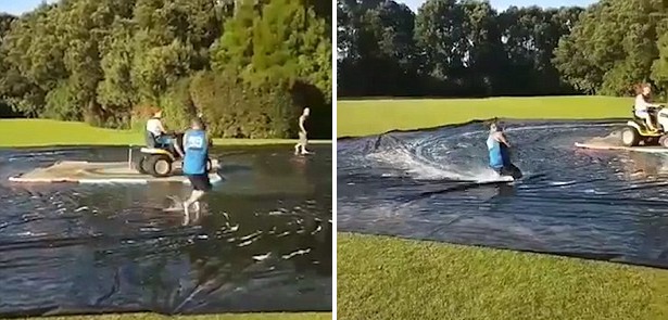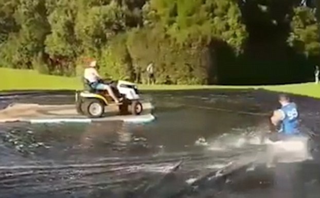 據(jù)英國(guó)《每日郵報(bào)》1月19日?qǐng)?bào)道,新西蘭漢密爾頓的兩個(gè)男子利用割草機(jī)和一大塊防水布打造了一個(gè)“滑冰場(chǎng)”。他們將一大塊防水布鋪在草地上,割草機(jī)放在中央,并把一根滑雪纜繩綁在上面,在割草機(jī)的帶動(dòng)下,人抓著繩子就可以在防水布上自由滑動(dòng)。