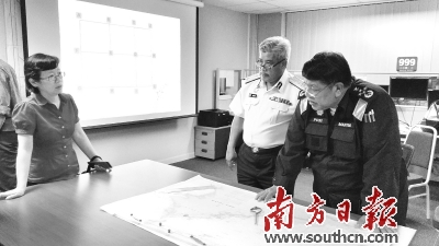 1月29日,哥打基納巴盧,馬方官員向中國駐哥打基納巴盧總領事陳佩潔(左一)通報搜救最新進展。 新華社發