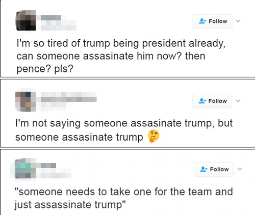 部分宣揚“刺殺特朗普”的推特截圖