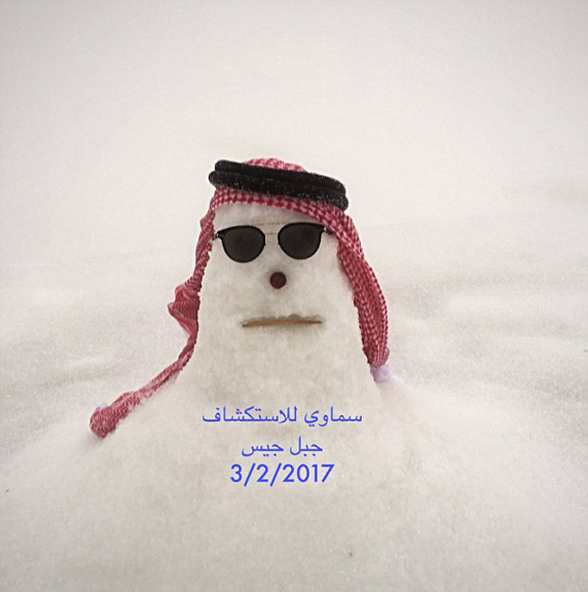 阿聯酋降罕見大雪 阿拉伯造型雪人網上走紅(圖)