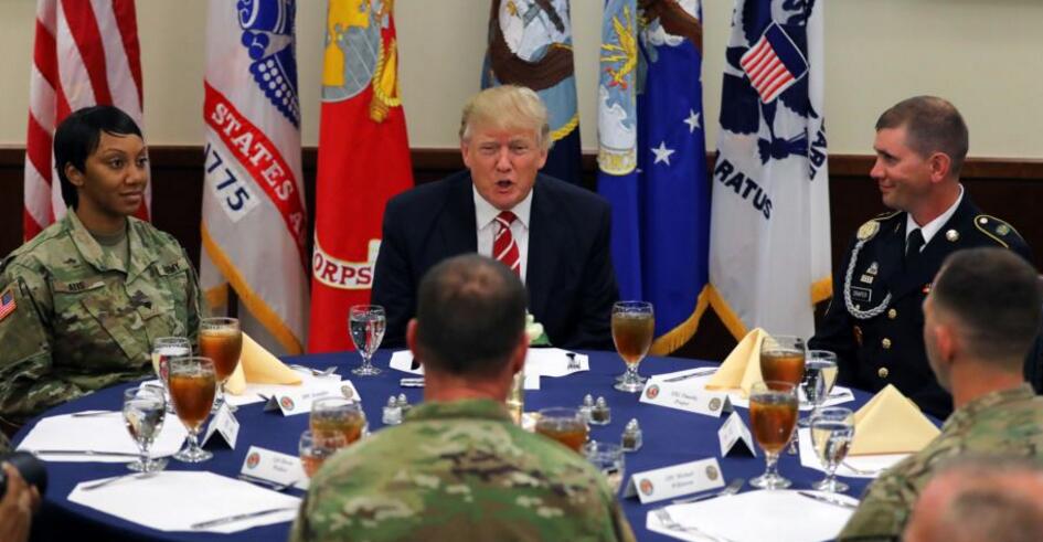 美國(guó)總統(tǒng)特朗普訪問位于佛羅里達(dá)州坦帕市麥克迪爾空軍基地的美國(guó)中央司令部總部