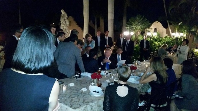 該報道也說,通常這類談話應閉門進行且秘而不宣,沒想到特朗普在佛羅里達州“馬阿拉歌”(Mar-a-Lago)私人俱樂部的成員卻近距離用照相機就能拍攝下來。
