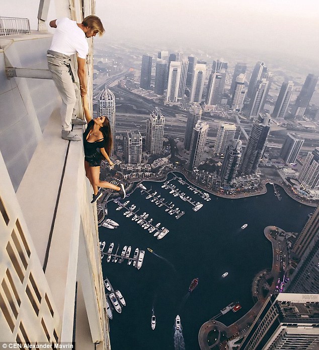 據英國《每日郵報》2月15日報道,這是一個驚心動魄的時刻:23歲的俄羅斯模特Viki Odintcova為了拍攝一張完美的照片,爬上世界最高的摩天大樓,在1004英尺(約306米)的樓頂。她僅僅靠抓住一名男助理的手保證自己不摔下去。編譯/余詩泉(參考消息網獨家編譯,轉載請注明出處)