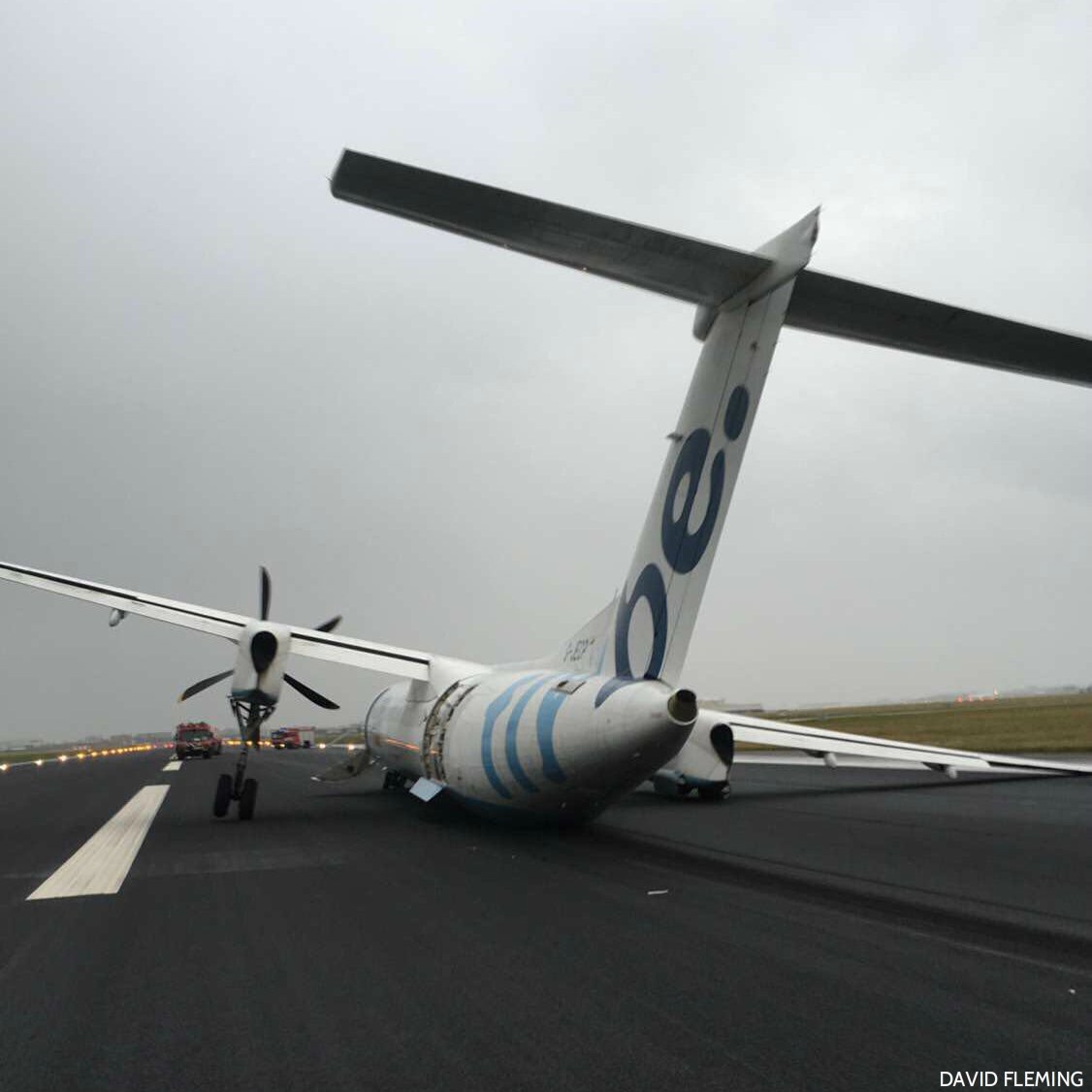 驚險!英國一載59人客機降落時起落架斷裂(組圖)