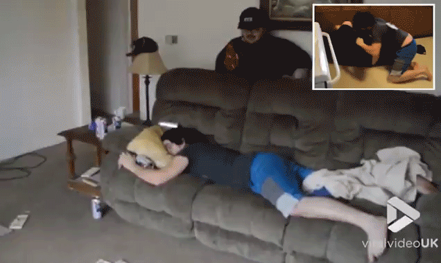 據英國《每日郵報》2月25日報道,在一夜的狂歡后,一般人都需要從宿醉中恢復一下。但畫面中的這名男子,要恢復的不僅僅是精神狀態,他還需要去處理一下傷口。據悉,這段影片來自美國,一名宿醉的男子臉朝下睡在沙發上,他的死黨將他“無情”地推下沙發,更“無義”地是,朋友還為他準備了15個捕鼠器,圍繞著他。編譯/熊婉君(參考消息網獨家編譯,轉載請注明出處)