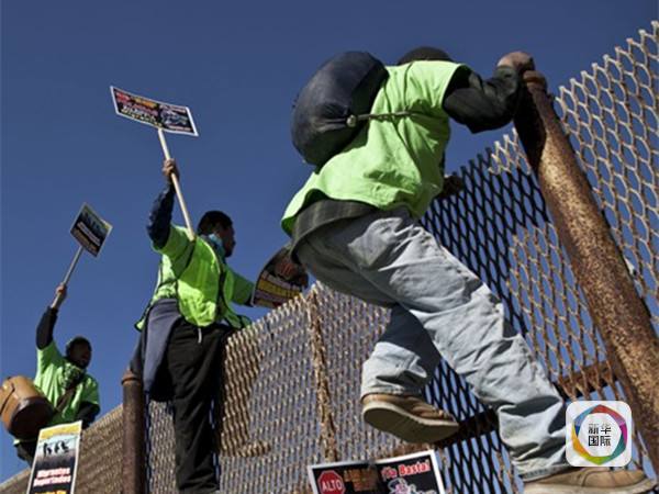 資料圖:非法移民試圖翻越美墨邊境護(hù)欄