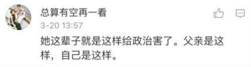 “她這輩子就是這樣給政治害了,父親是這樣,自己是這樣。”在微博上談?wù)撨@位“悲情女總統(tǒng)”時,有網(wǎng)友唏噓地說。