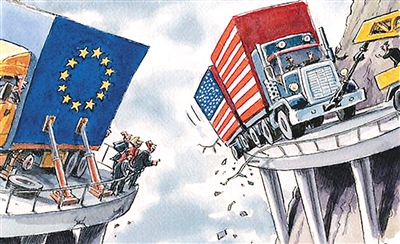 漫畫:美國與歐洲漸行漸遠。 資料圖片
