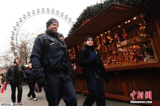 2016年12月21日,德國柏林遭遇恐襲的圣誕市場重新開放,警察持沖鋒槍加強安保巡邏。