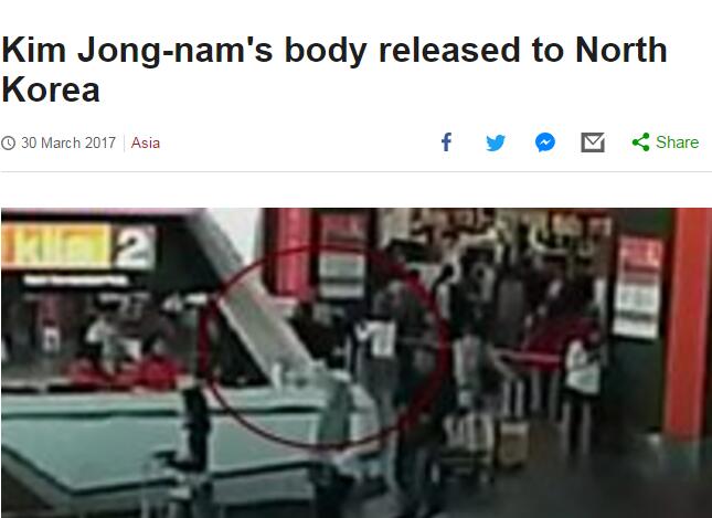 【環球網綜合報道】據英國廣播公司(BBC)當地時間3月30日報道,在與平壤長時間的談判后,馬來西亞已經將金正男的遺體歸還給朝鮮。