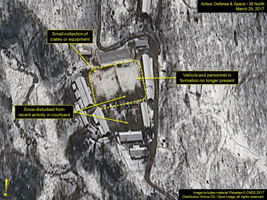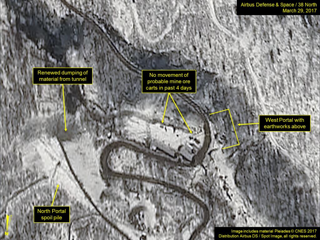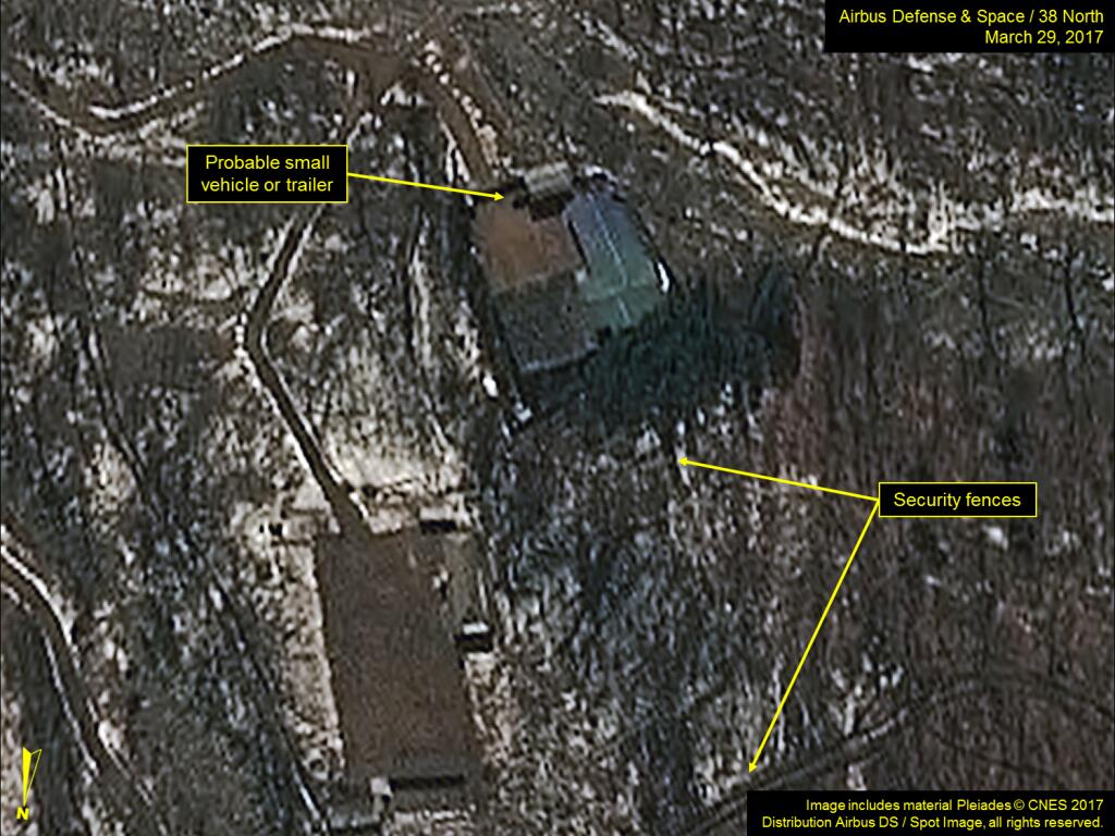 “北緯38度”稱,在豐溪里試驗(yàn)場(chǎng)北部坑道處停留的卡車及拖車等都已消失。該網(wǎng)站還推測(cè),過去幾日朝鮮核試驗(yàn)準(zhǔn)備或已完成,否則就是情況可能出現(xiàn)了變化。該網(wǎng)站認(rèn)為,如果過去幾天的活動(dòng)確實(shí)和核試驗(yàn)有關(guān),那么則可能暗示著核試驗(yàn)準(zhǔn)備已完成,隨時(shí)可以進(jìn)行核試。