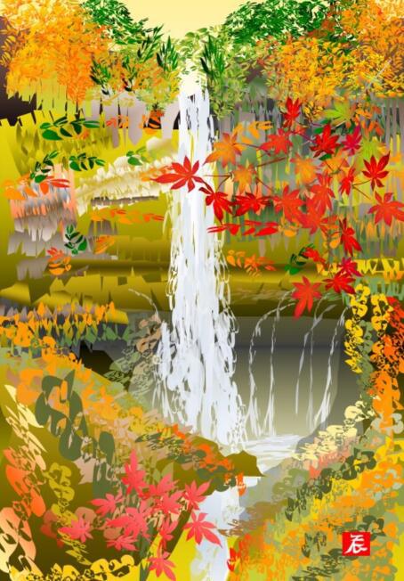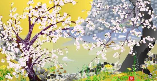 這位老爺爺名叫堀內(nèi)辰男。他的作品有櫻花、紅葉等日本元素,也有四季風景,每一幅畫作都非常精美,引起了日本國內(nèi)外的關注。