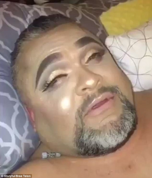 【環球網綜合報道】據英國《每日郵報》4月26日報道,近日,來自美國亞利桑那州巴克艾的少女布里·特勒(Bree Telon)趁她父親熟睡時進行了一項惡作劇。布里心血來潮,決定練習下自己的化妝技術,便拿熟睡的父親練手,給父親的臉上化了個大濃妝。