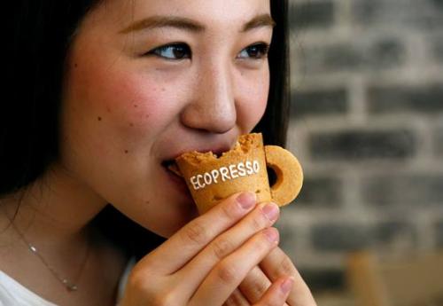 這家咖啡館推出了配有貓咪拉花圖案的“生態濃縮咖啡瑪奇朵(Ecopresso Macchiato)”,貓咪的圖案讓整杯咖啡看起來賣相很好,最美妙地是,顧客在享用咖啡的同時,還可以連同杯子一起吃掉。