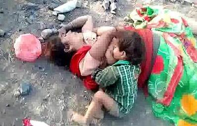 中國臺灣網5月25日訊 據臺灣“東森新聞云”報道,日前,印度達莫縣一名婦人陳尸火車鐵軌旁,但她年幼的兒子不知母親已經死亡,還趴在母親的尸體上吃奶,并拚命哭喊和搖晃尸體,試圖喚醒母親。