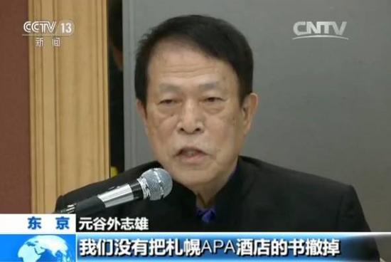 據《日本時報》3日報道,元谷外志雄在新書中聲稱“所謂的南京大屠殺故事”是“捏造的”,并倒打一耙指責中國軍人在這里搶掠殺戮。“日本軍隊僅僅是找出并處死那些扔掉軍服、偷了老百姓衣服并攜帶彈藥武器藏在難民營中的便衣士兵。”《環球時報》記者看到,該書還將APA酒店因放書遭中國人批評和抵制一事寫入其中。