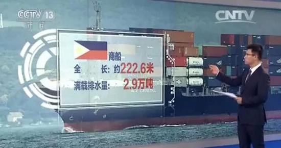 與美國軍艦相撞的商船全長約222.6米,滿載排水量為2.9萬噸。