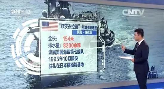 美國阿利·伯克級導彈驅逐艦“菲茨杰拉德”號全長154米,排水量為8300余噸。