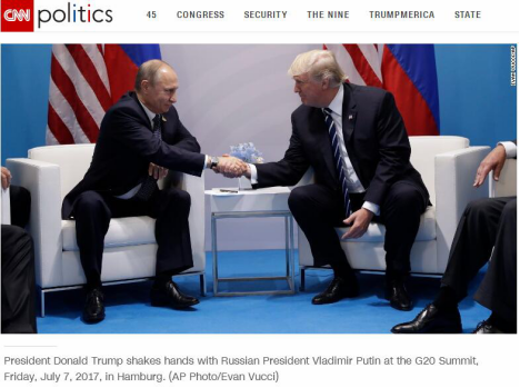 據(jù)CNN報道,在此次閉門會晤中,除了兩位領(lǐng)導(dǎo)人外,只有美國國務(wù)卿蒂勒森、俄羅斯外長拉夫羅夫及雙方翻譯在場。兩人交談了兩個多小時,涉及到敘利亞、烏克蘭等地區(qū)局勢以及網(wǎng)絡(luò)安全等問題,并宣布達(dá)成敘利亞西南部停火協(xié)議 。