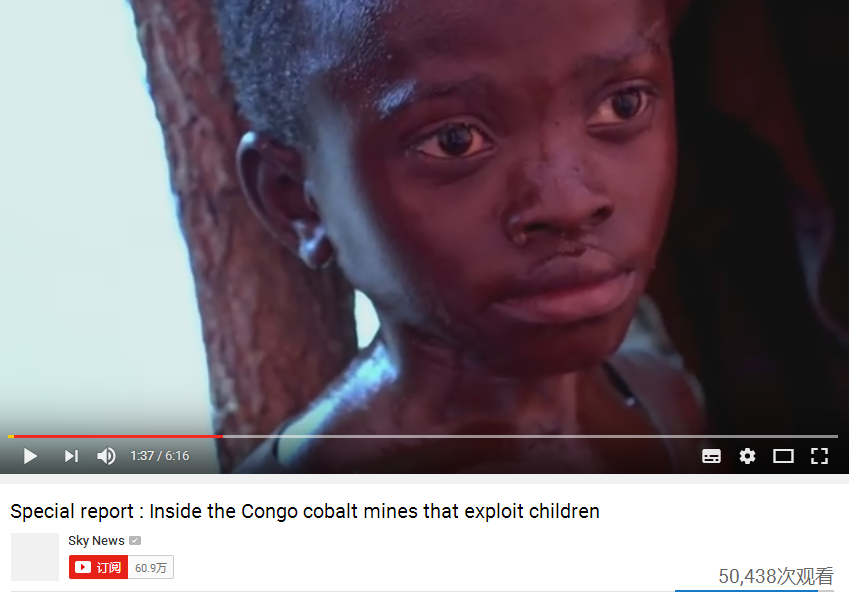 多森和理查德是一家英國媒體攝制的視頻中的人物。大雨磅礴,他們在剛果(金)鈷礦區勞作,用孱弱的肩膀扛起裝滿礦石的麻袋;他們蹲在地上,用臟兮兮的小手篩選礦石……像他們這樣的“童工”沒有鞋,沒有任何保護措施,最小的4歲。悲慘的不止孩子,還有人因喝了被污染的水喉嚨上長了腫瘤。