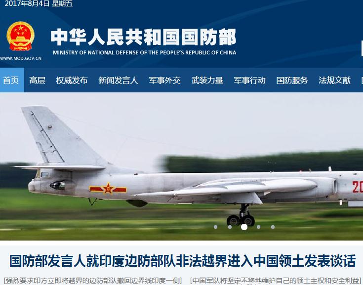 中國外交部8月2日發布《印度邊防部隊在中印邊界錫金段越界進入中國領土的事實和中國的立場》之后,8月3日上午至4日凌晨,解放軍報、新華社、外交部、國防部、中國駐印度大使館以及人民日報等中國6個國家部委和機構先后就印方越界事件發聲,披露印方非法越界的性質,并強調中國將采取一切必要措施維護自己的正當合法權益。