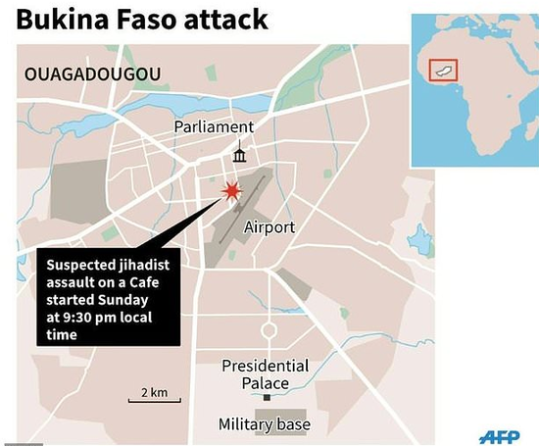 事件發(fā)生在周日(13日)晚間,據(jù)報(bào)有多名疑似圣戰(zhàn)分子持槍駕車到一間土耳其餐館,在門(mén)外向店內(nèi)開(kāi)火,隨后布吉納法索安全部隊(duì)配備裝甲車輛抵達(dá)現(xiàn)場(chǎng),與恐怖份子互轟,槍?xiě)?zhàn)造成17人死亡,8人受傷(稍后死亡人數(shù)增至18人)。