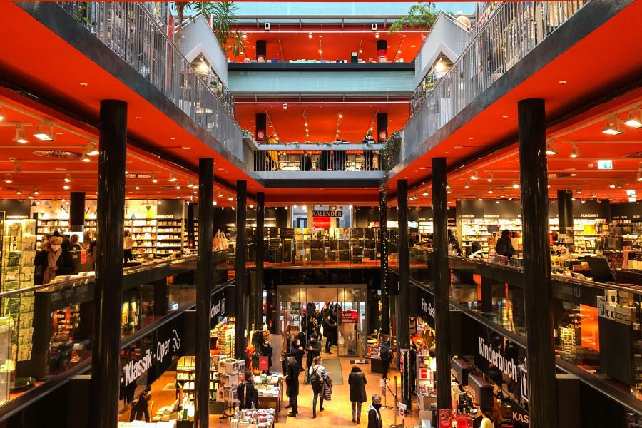 首都柏林市中心有一家名為“杜斯曼”的大型書店,上下五層,營業面積超過7300平方米。書店藏書眾多,品類豐富,規模號稱德國最大,又緊鄰菩提樹下大街等著名景點,是很多當地人和游客的必到打卡地。