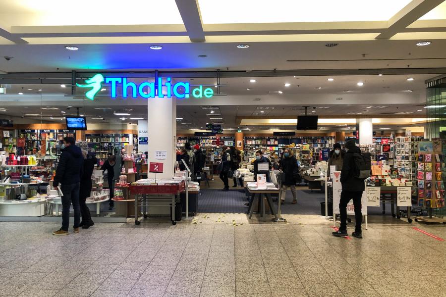 去年12月中旬,德國啟動“全面封鎖”前,杜斯曼書店門前排起長隊,記者等了二十多分鐘才進入店內。一問才知,很多人都擔心書店關門,于是抓緊時間多買一些書。