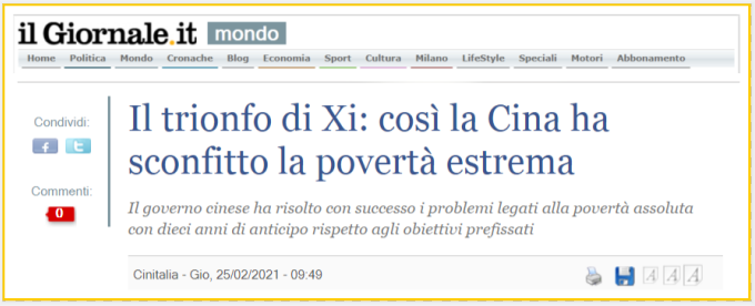 當(dāng)?shù)貢r(shí)間2月25日,意大利主流媒體《日?qǐng)?bào)》網(wǎng)站也發(fā)表總臺(tái)稿件《習(xí)近平莊嚴(yán)宣告:中國(guó)戰(zhàn)勝了絕對(duì)貧困》。文章通過(guò)歷史回顧和數(shù)據(jù),分析闡述了中國(guó)脫貧攻堅(jiān)取得的歷史性成果。報(bào)道指出,鄉(xiāng)村振興將是中國(guó)的下一個(gè)發(fā)展目標(biāo)和重大任務(wù)。中國(guó)將積極開(kāi)展國(guó)際減貧合作,做世界減貧事業(yè)的有力推動(dòng)者。(總臺(tái)記者 張赫 魏帆 趙洪超 宋承杰)(編輯 代根華)