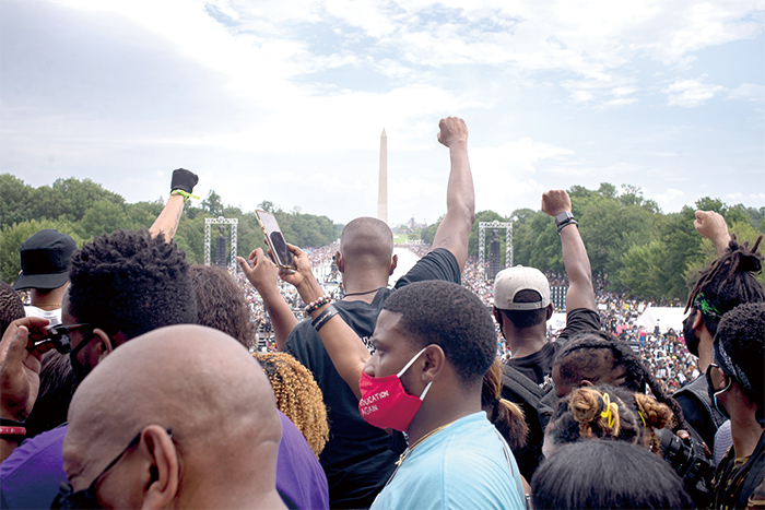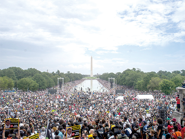 2020年8月28日,人們在美國首都華盛頓林肯紀念堂附近參加反種族歧視和暴力執法示威活動。 新華社發(阿蘭 攝)