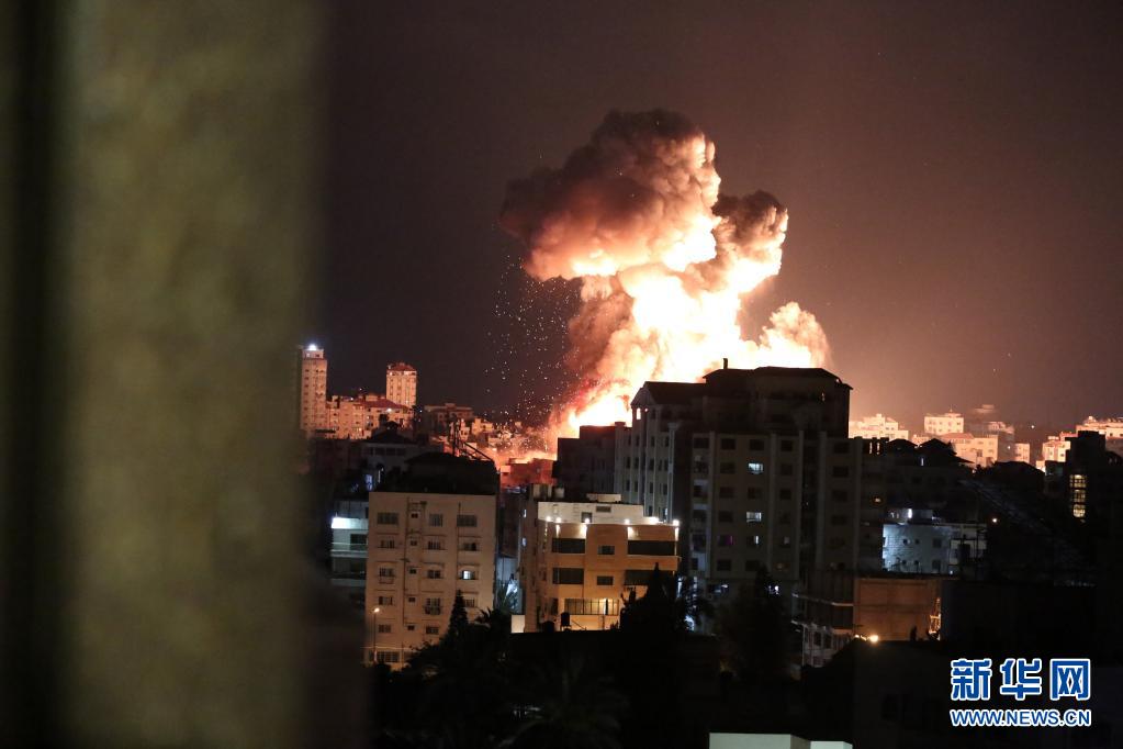 5月12日午夜前后,加沙城一處建筑在以色列空襲中發生爆炸。新華社發(亞西爾攝)
