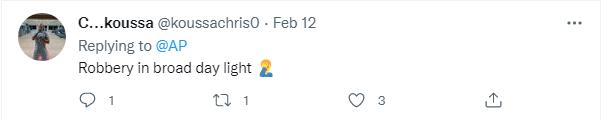 對于美國的這一決定,很多網友也直接斥之為搶劫。網友C...koussa在美聯社的報道下留下了“光天化日之下搶劫”的評論。