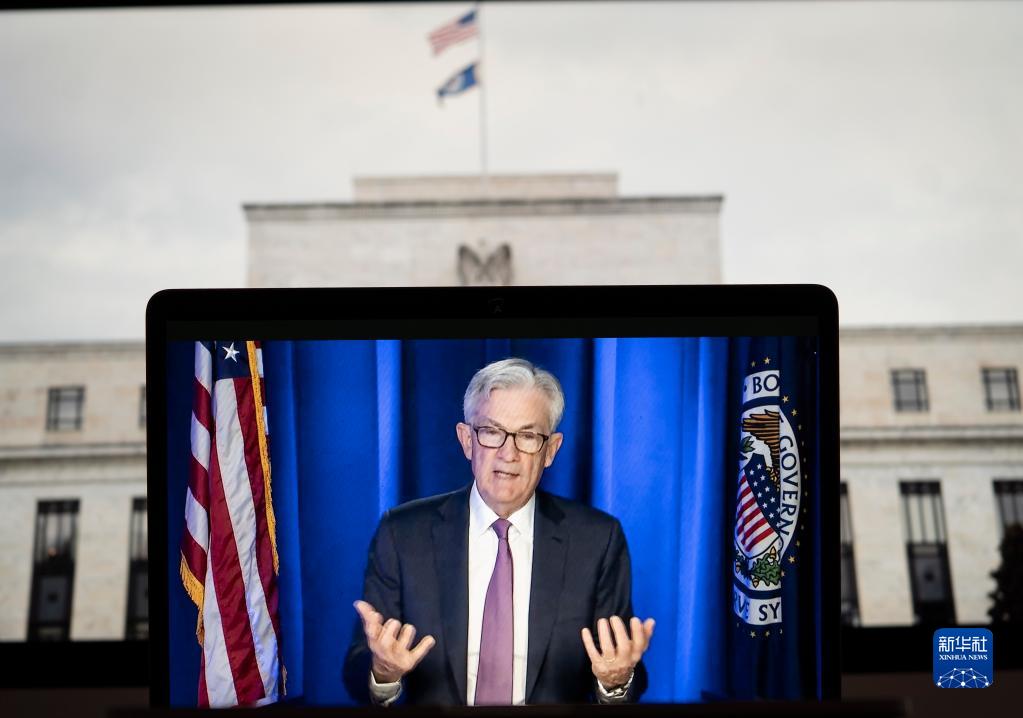 3月16日拍攝的視頻畫面顯示,美聯儲臨時主席鮑威爾在華盛頓出席線上新聞發布會。新華社記者 劉杰 攝