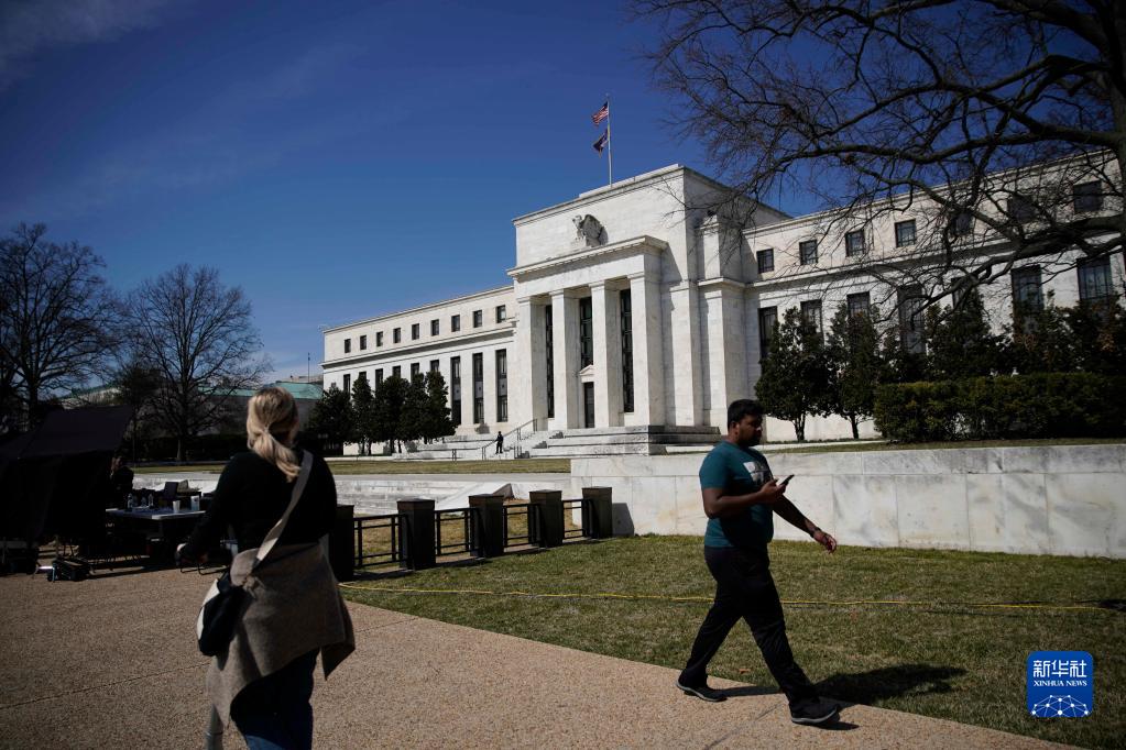 3月16日,在美國首都華盛頓,人們從美聯儲大樓前走過。新華社發(沈霆 攝)