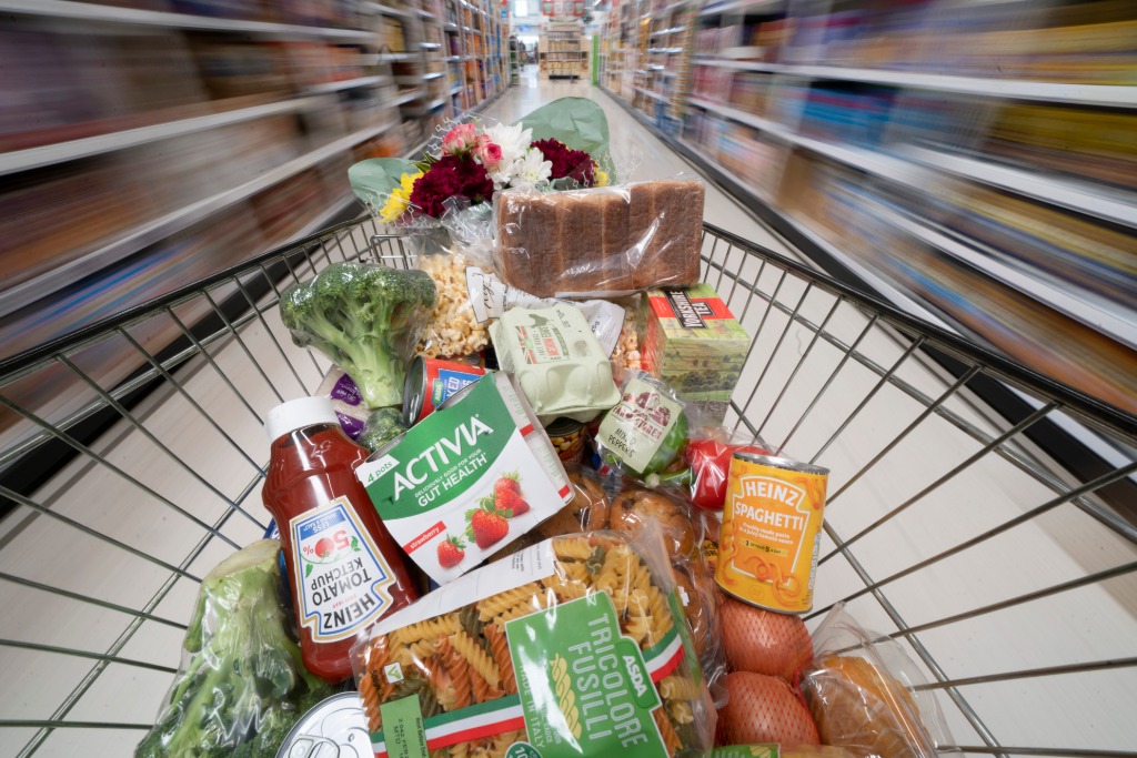 這是4月13日在英國曼徹斯特一家超市內(nèi)拍攝的購物車。新華社發(fā)(喬恩·休珀攝)