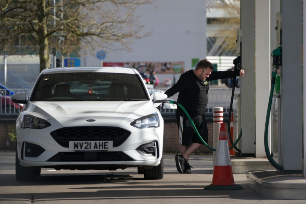 4月13日,一名男子在英國曼徹斯特一處加油站加油。新華社發(fā)(喬恩·休珀攝)