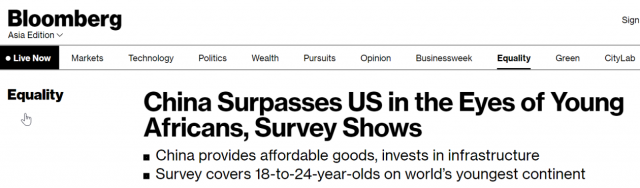 彭博社:調(diào)查顯示,中國在非洲年輕人眼中已超越美國