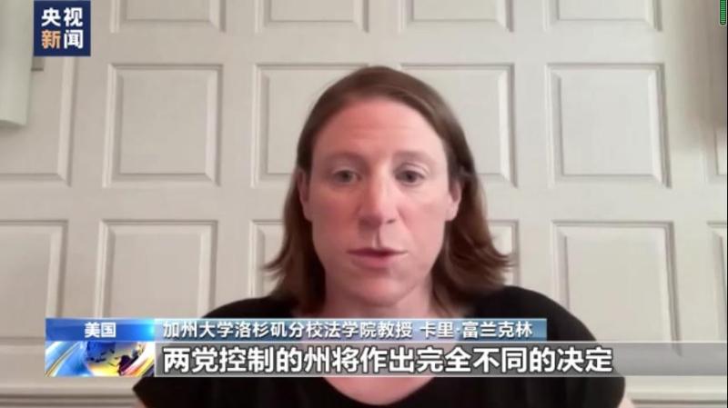 加州大學洛杉磯分校法學院教授 卡里·富蘭克林:我們看到美國(支持民主黨的)藍州和(支持共和黨的)紅州之間分裂正在進一步加劇,兩黨控制的州將作出完全不同的決定。最高法院似乎只是在執行某一黨派的政策,因此也失去了很多美國人的信任。