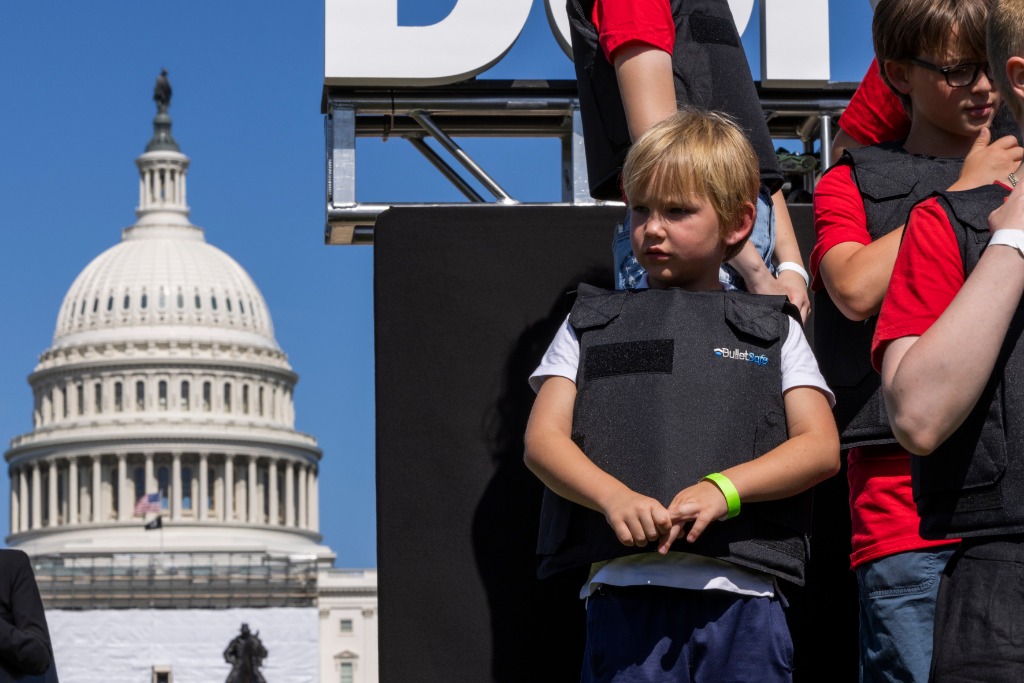 6月6日,學生們身穿防彈衣在美國華盛頓的國會大廈前參加名為“不要回避”的抗議活動,呼吁立法機構正視美國槍擊案頻發的社會問題,要求加強槍支管控立法。新華社發(亞倫攝)