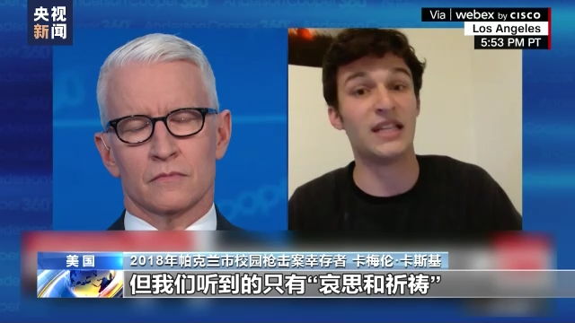 2018年帕克蘭市校園槍擊案幸存者卡梅倫·卡斯基:全美的控槍活動人士和相信槍支安全法的人們都等著聽到“行政命令”這個詞,但我們聽到的只有“哀思和祈禱”。