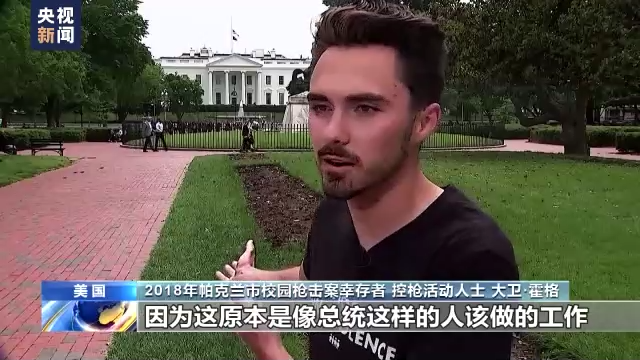 2018年帕克蘭市校園槍擊案幸存者控槍活動人士大衛·霍格:我們不想在這里(呼吁控槍),因為這原本是像總統這樣的人該做的工作,但我不得不這么做,因為我們的政府無所作為。