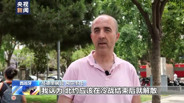 西班牙馬德里市民 阿爾韋托:我認為,北約應該在冷戰結束后就解散。如果(西班牙)退出北約,我不會覺得遺憾。我認為北約是一個不必要的組織,因為它是制造沖突的焦點。